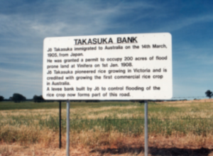 オーストラリアに米作りを確立した貢献により、1991年にスワンヒル自治会によって記念碑が建てられています。